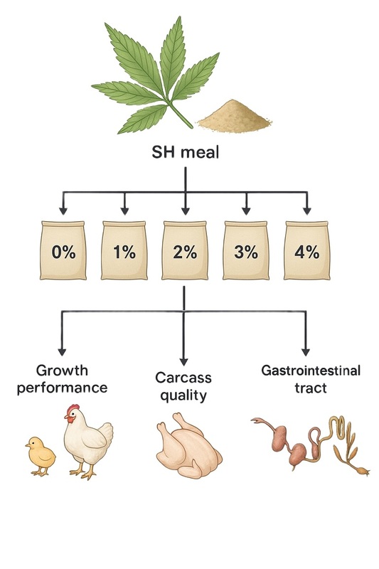 and 4% SH meal. The parameters assessed included growth performance, breast